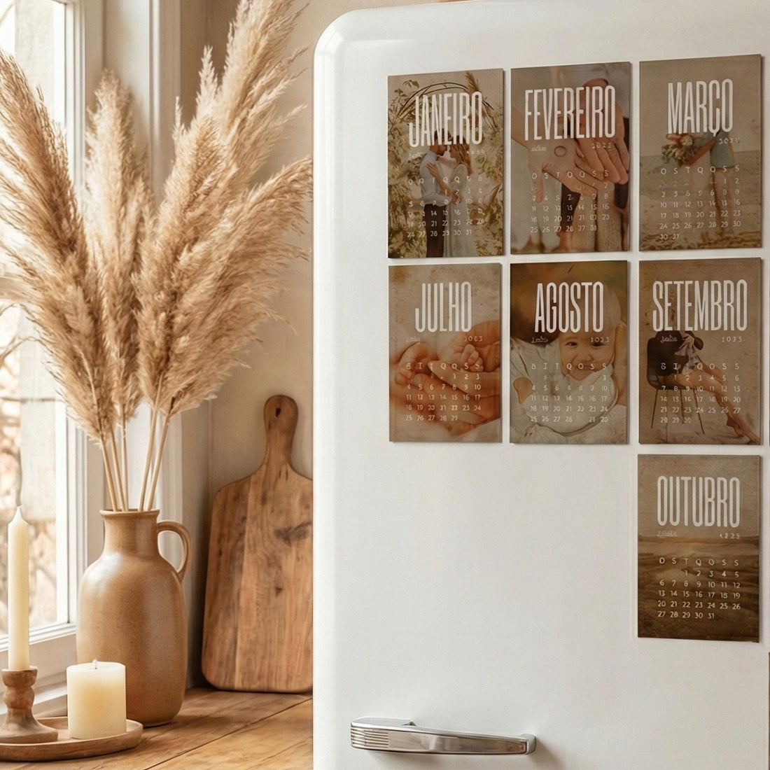 Calendário 2026 Personalizado Com Foto - Kit 12 Ímãs Magnéticos de Geladeira