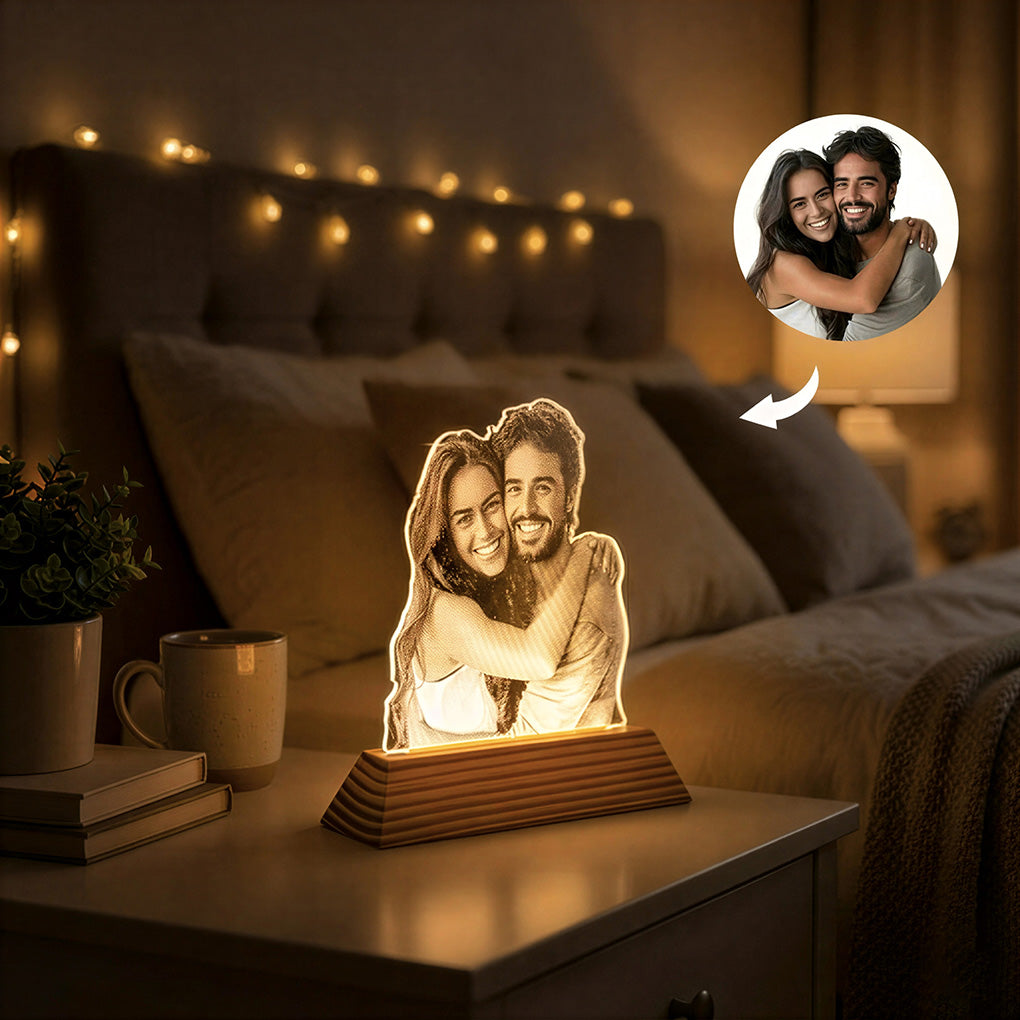 Porta Retrato Abajur Iluminado Personalizado Com Foto - Moldura em Madeira Com Foto Desenhada Iluminação LED Decoração