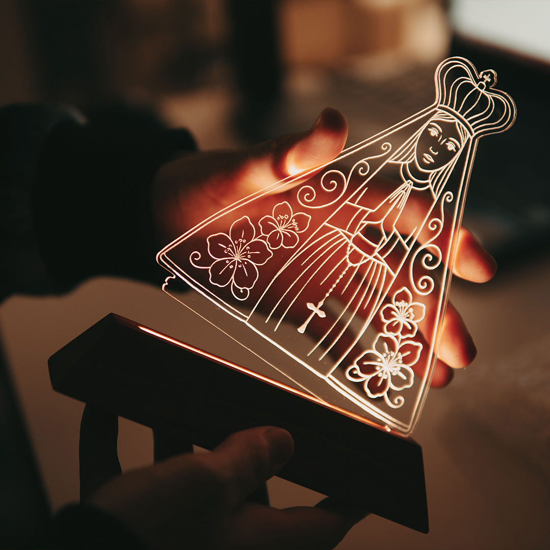 Luminária LED Imagem Nossa Senhora de Fátima - Presente Troféu Lembrança Mães Avós Bebês Decoração Sala Quarto